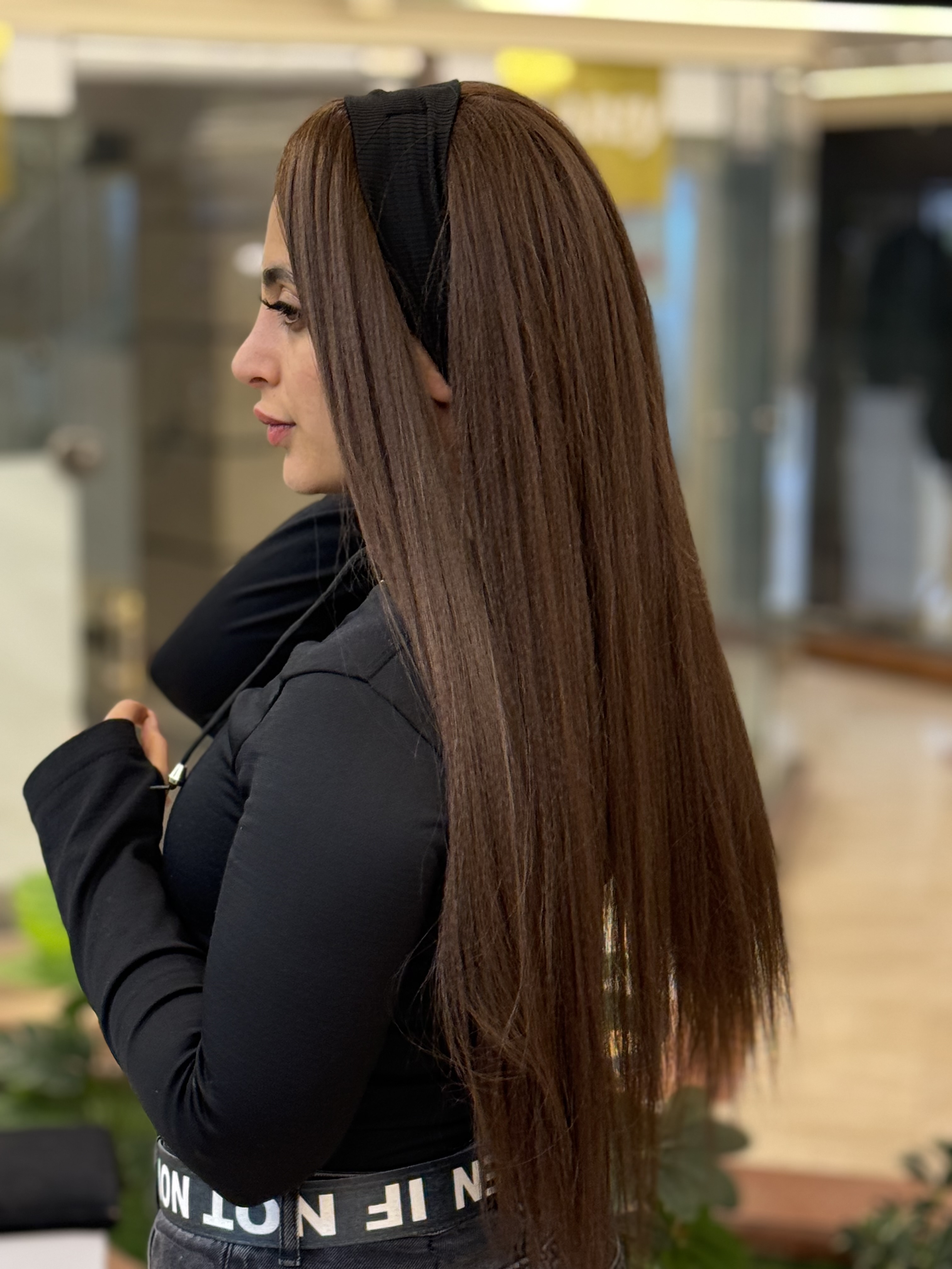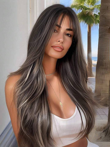 کلاه گیس پروتز کفسری کامل دودی زیتونی قد90 حجم پر