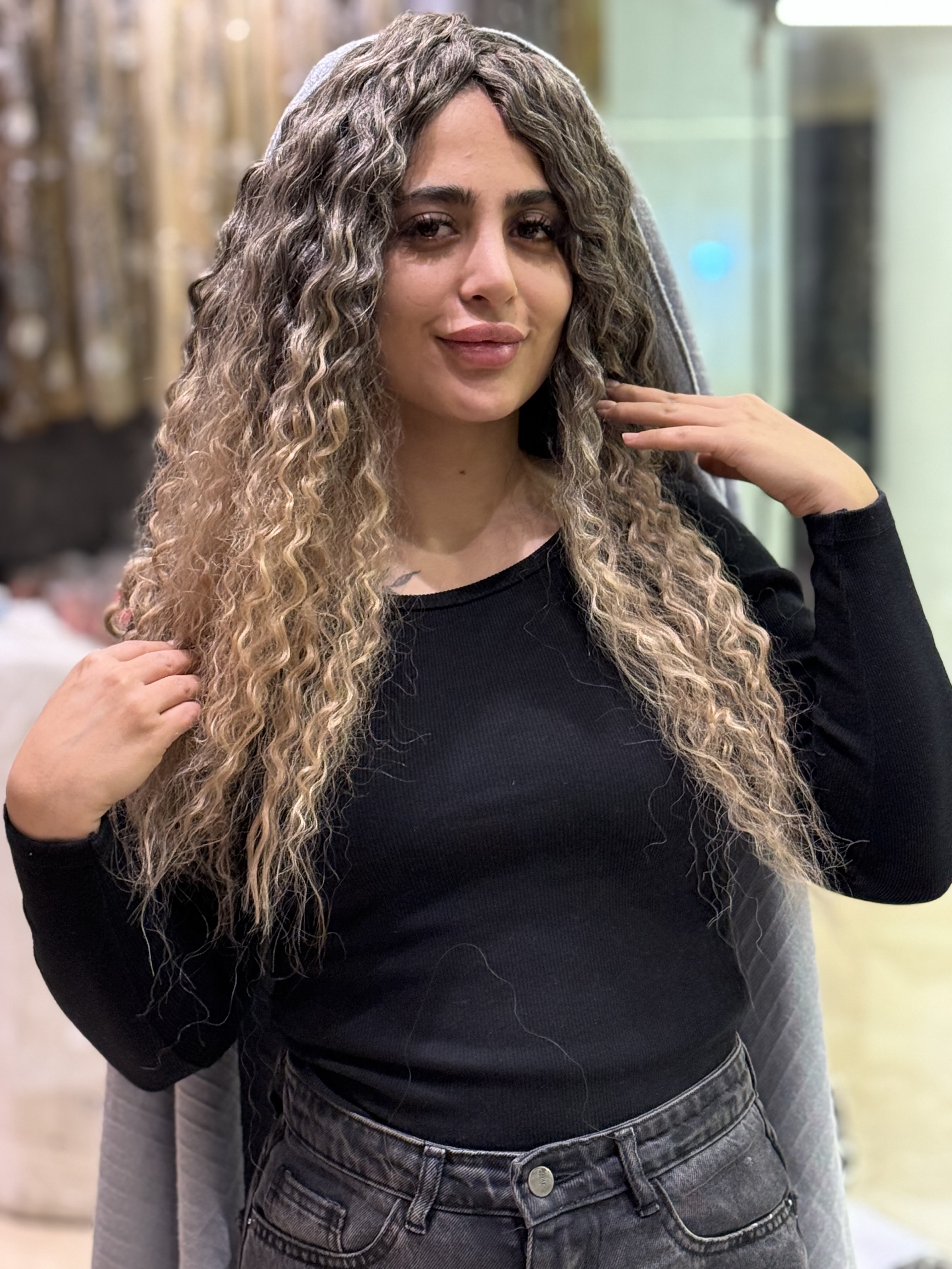 کلاه گیس وارداتی فر آمبره مشکی شامپاینی