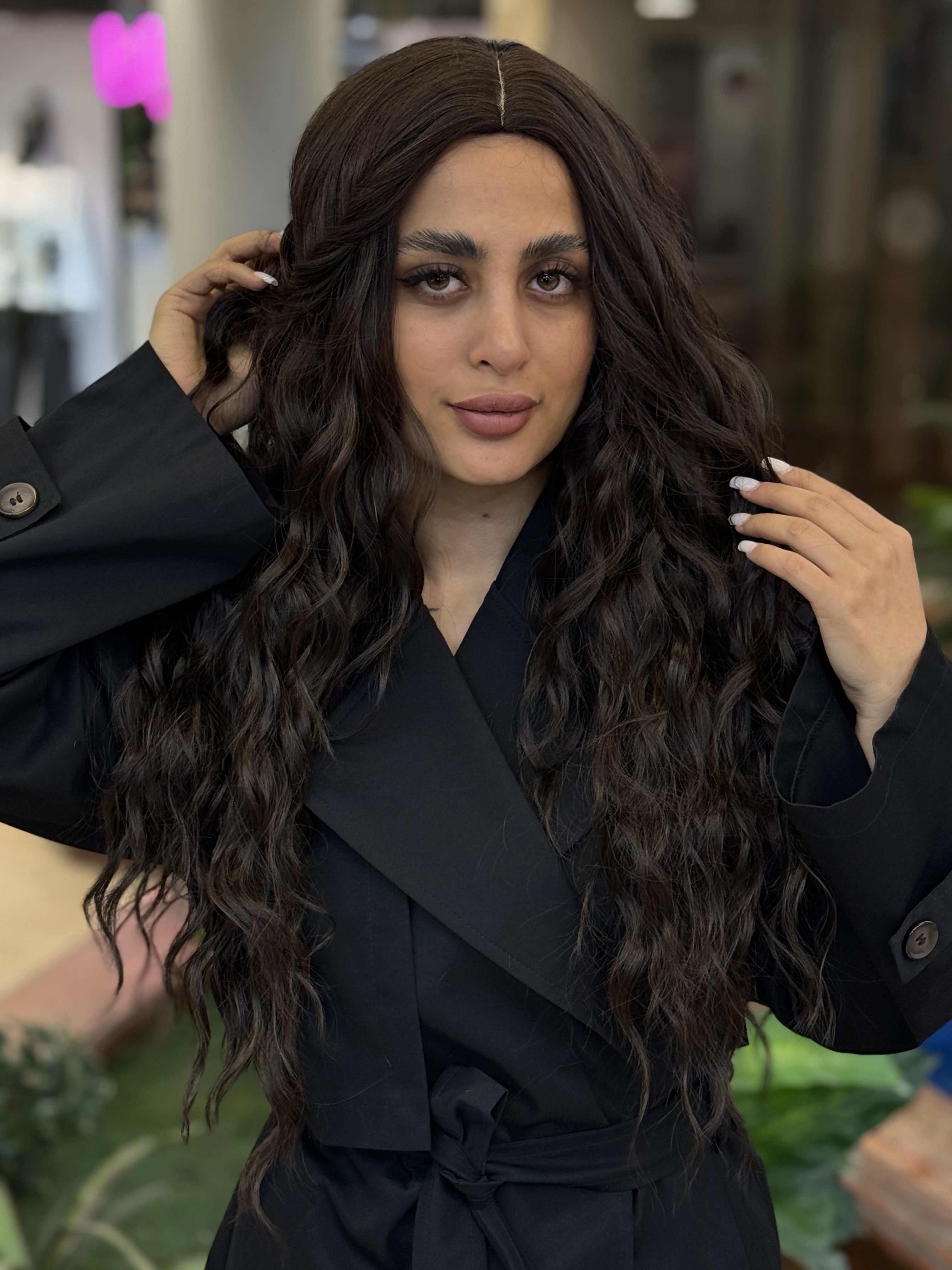 کلاه گیس وارداتی مصری چتری دار مدل دارک مشکی پر کلاغی