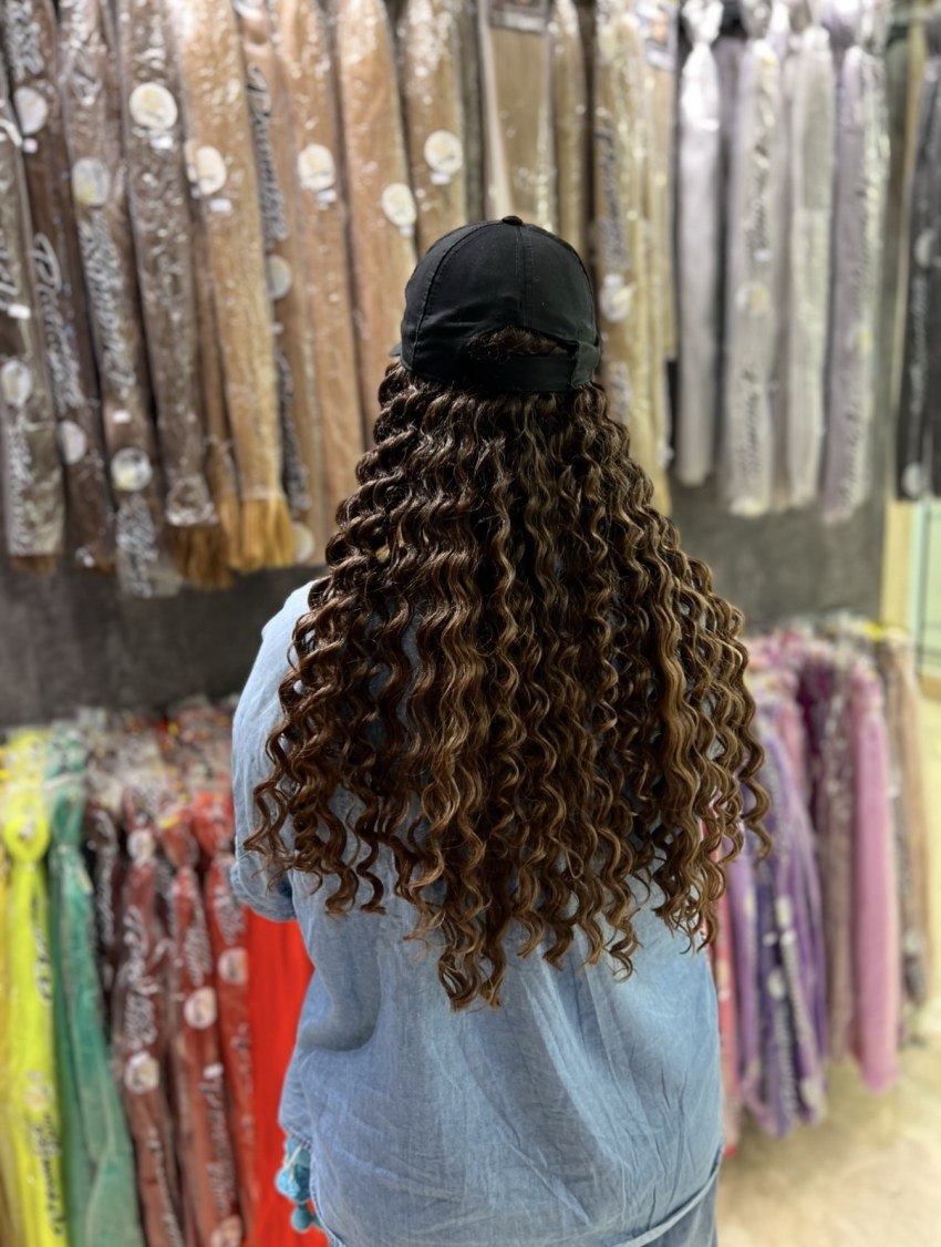 کلاه مویی فر حالت دار خرمایی کد4 قد80
