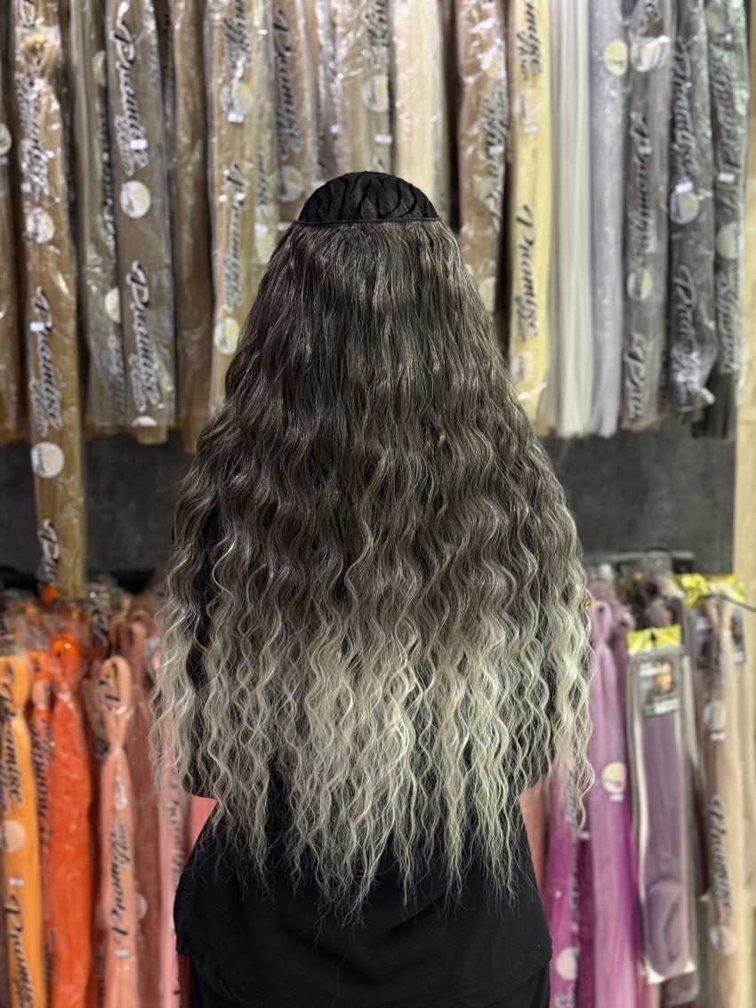 ست فرفری شامل: اکستنشن قد 80 فر امبره مشکی طبیعی و دودی نقره ای + هدمویی قد 70 برای جلوی سر مشابه اکستنشن
